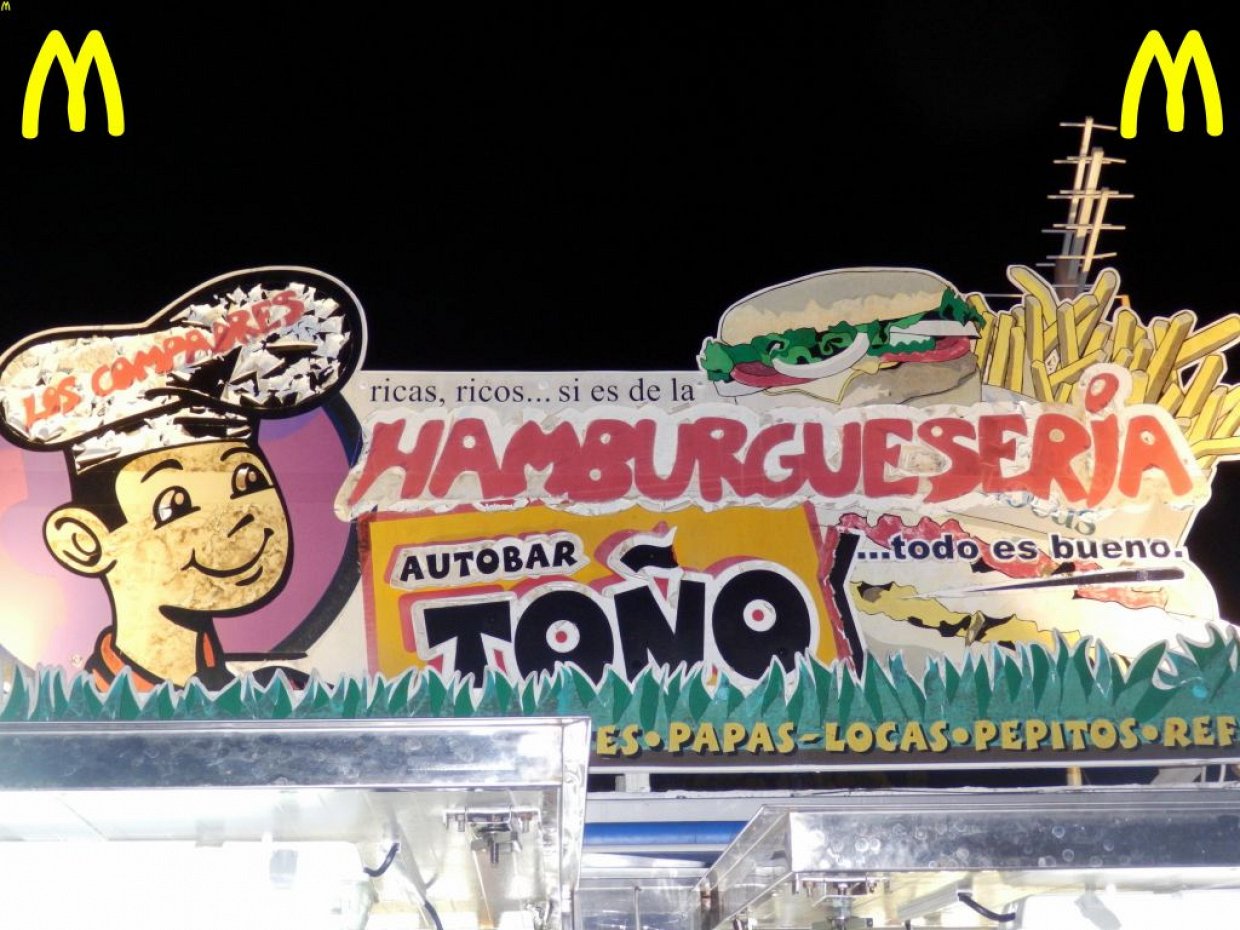 De lokale hamburgertentjes op La Palma hebben hamburgers van echt vlees i.p.v. round-up bestendige sojabonen. Heerlijke zongerijpte tomaten van La Palma. De uien zijn werkelijk smaakvol en de sla is vers gesneden. Zo kunnen we nog wel even door gaan. Natuurlijk, smaken verschillen en over smaak valt niet te twisten. Maar hebben die producten van die grote nieuwkomer wel smaak. Of gaat het slechts om de kadootjes voor de kinderen die ze in het eten verstoppen. Bovendien vragen we ons af hoe een Palmero ‘happy meal’ gaat uitspreken. Maar wat vooral René een doorn in zijn oog is, is die buitengewoon overmatige en agressieve reclamecampagnes van die multinationals. Op heel La Palma struikelde je eerst over reclame zuilen van de Lidl en nu is er weer MacDonald. Het begint al bij de luchthaven. Net alsof de La Palma tourist daar op zit te wachten. Die komt juist naar La Palma omdat het anders is dan al die andere gekloonde vakantiebestemmingen. Op het moment krijg je als tourist na aankomst op La Palma gelijk een overdosis MacDonald.
