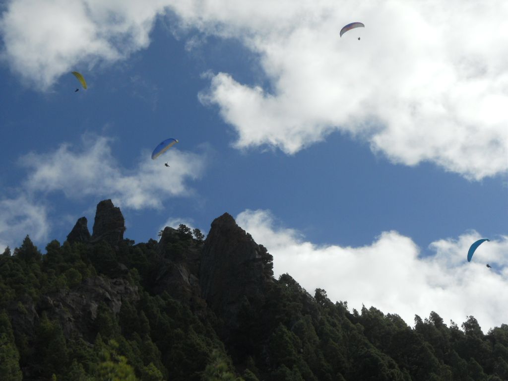 La Palma is een walhalla voor parapenters. Van heinde en ver komen ‘piloten’ naar La Palma om de unieke omstandigheden hier mee te maken. Regelmatig worden er nationale en internationale wedstrijden gehouden. Tussen september en april zijn de meteorolgische omstandigheden voor parapente het best. Het is altijd een lust voor het oog om de kleurige schermen met hun bestuurders eronder over de bergen en oceaan te zien scheren. Er is in Puerto Naos een parapente club die de mogelijkheid biedt om een tandemvlucht te maken. Gekoppeld aan een gediplomeerde tandempiloot kun je dan zelf ervaren wat het is om vrij als een vogel door de lucht te zweven. Er zijn twee mogelijkheden. Een korte kennismakingsvlucht met de start op 240 meter boven zeeniveau en een vlucht langs de kliffen. Of een langere vlucht over pijnboombossen en de Jedey vulkaan na een ‘take-off’ op 940 meter boven zeeniveau. Beide vluchten eindigen op het strand van Puerto Naos.