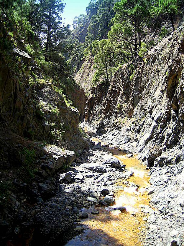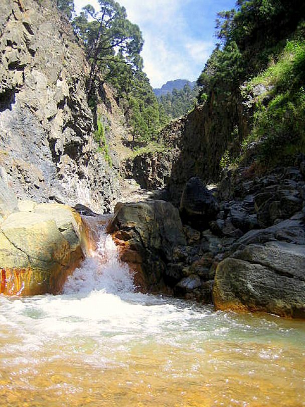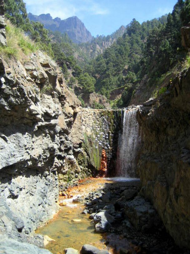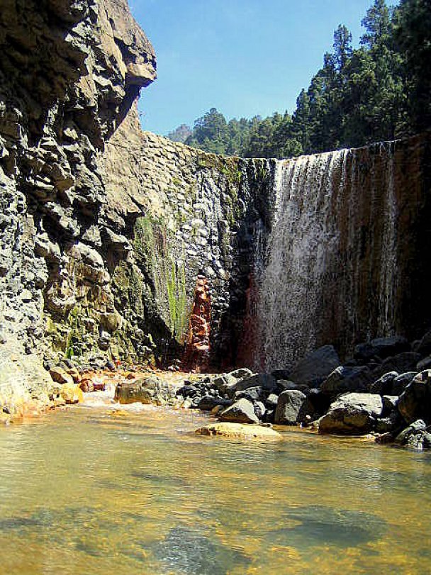 Veel wandelaars op La Palma maken de wandeling in de Caldera de Taburiente. Ook de wandeling door de bedding van het riviertje Rio de Taburiente in de Barranco de Las Angustias stroomopwaarts naar Dos Aguas is populair. Om de gekleurde waterval te bereiken, vergt slechts een kleine extra inspanning tijdens de twee eerder genoemde wandelingen.