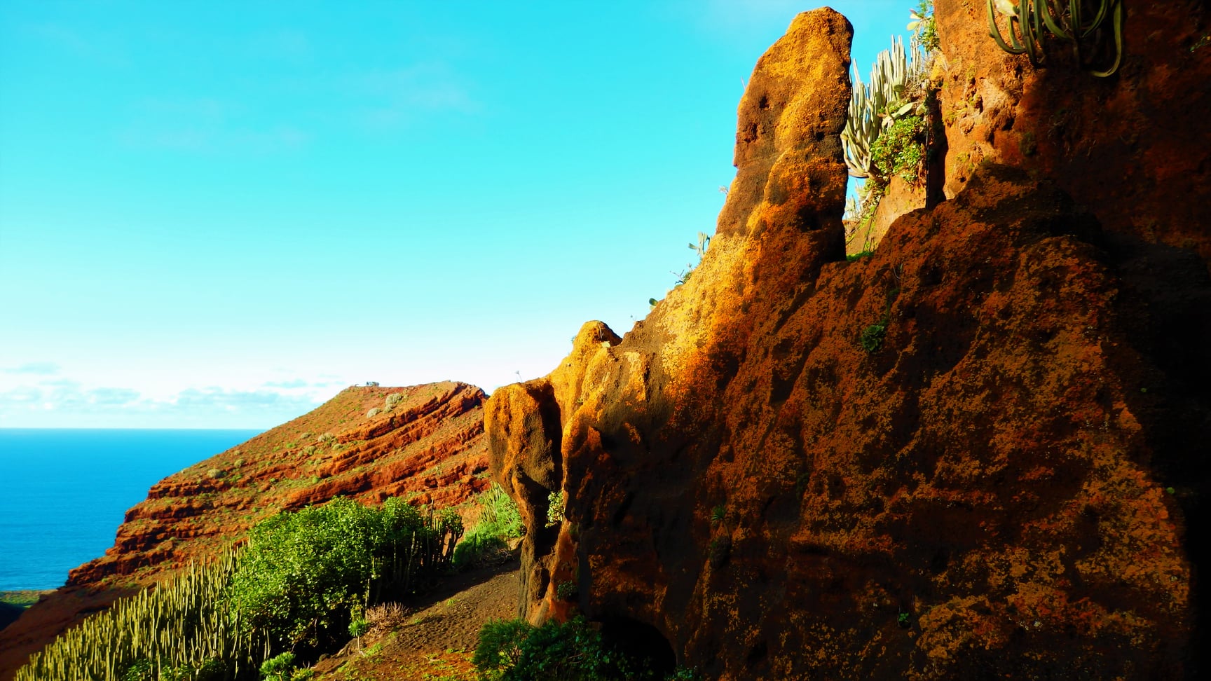 Martijn had gevraagd of René zin had om nog een niet alledaagse wandeling met hem te maken. Geen punt. Dat werd een rondwandeling bij Juan Adalid en El Mudo. Grotendeels zelf je weg zoeken tussen cactussen, wolfsmelk en agaves. René maakte heel de week al geintjes over het feit dat Martijn het over wax had, dat hij in zijn haar smeerde. Na een zij-uitstapje naar een soort natuurlijke windtunnel was die gel wel uit zijn haar verdwenen. Zelfs kogellager vet zou niet bestand zijn geweest tegen dit natuur geweld.